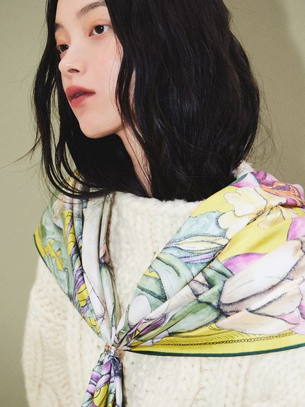 【スカーフ】スウォッシュロンドン(SWASH LONDON)FLOWER 88cm×88cmシルクスカーフ日本製