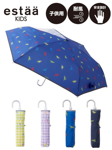 【雨傘】エスタ(estaa)KIDS チェックフラワー ダイナソー 無地 プレーン 折りたたみ傘【公式ムーンバット】キッズ 子供用 耐風傘 リフレクトテープ 55cm