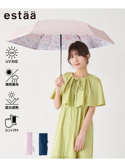 【日傘】エスタ(estaa)Beauty Shieldバックプリントフラワーグラデ5段ミニ折りたたみ傘晴雨兼用一級遮光UV